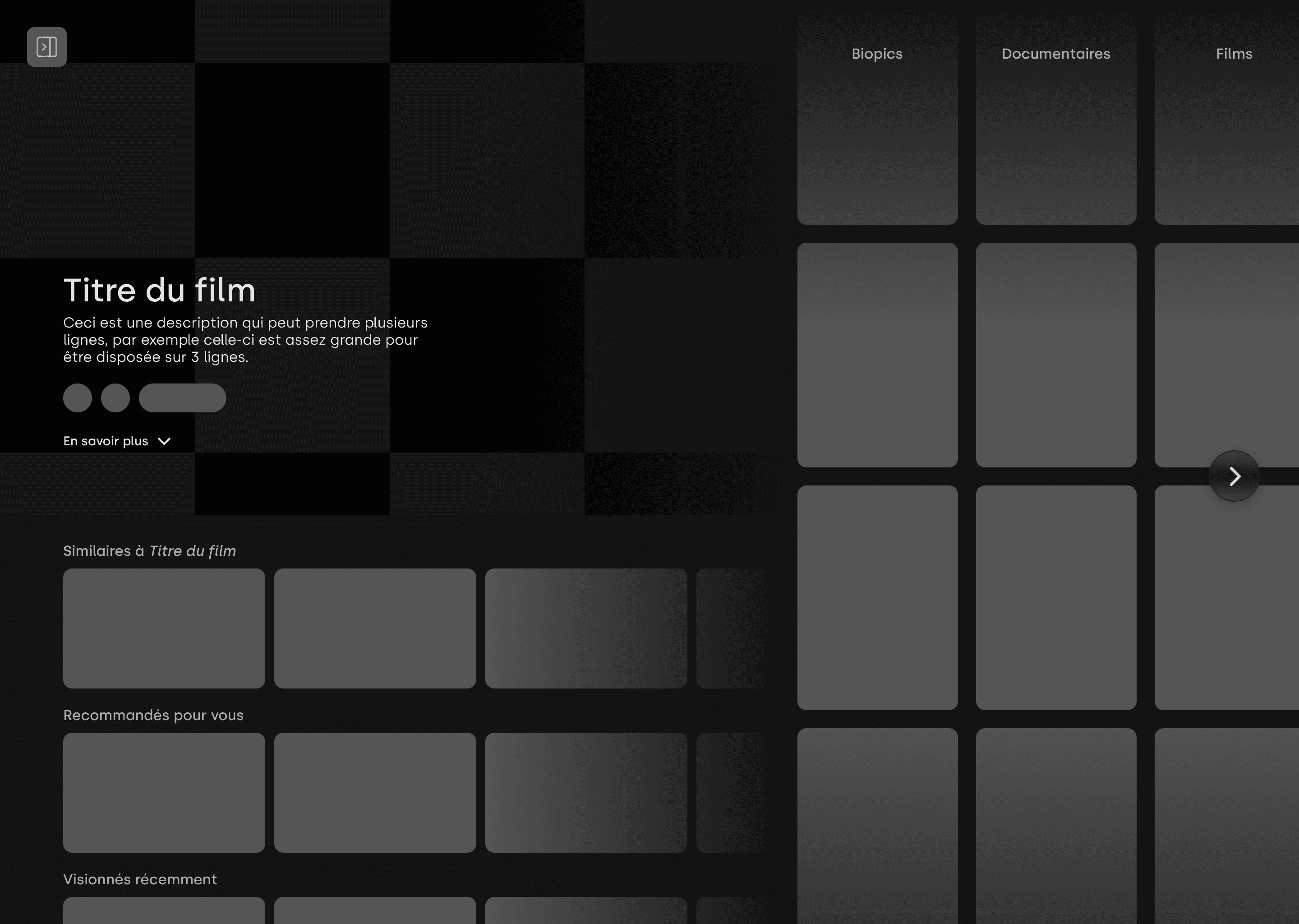 Matteo Scotto and I challenged ourselves to re-think the classical and over-expected user interface of VOD platforms. Thus, we designed a two panels app, one focusing on the selected show, and the other allowing vertical scrolling. The vertical scrolling follows a more novel and intuitive approach to the intricate display of multiple thumbnails, and allows the use of the cinema poster ratio.
