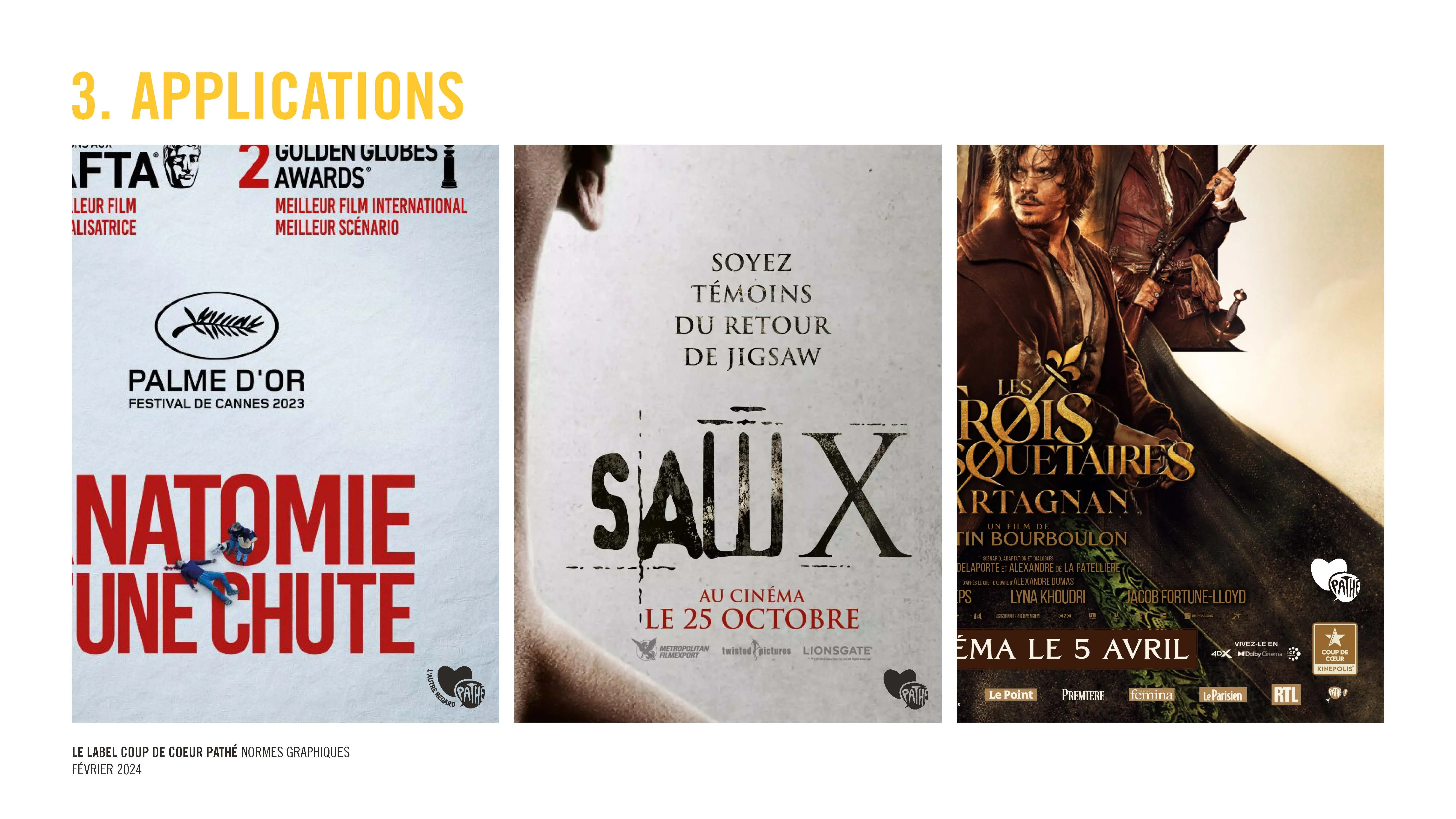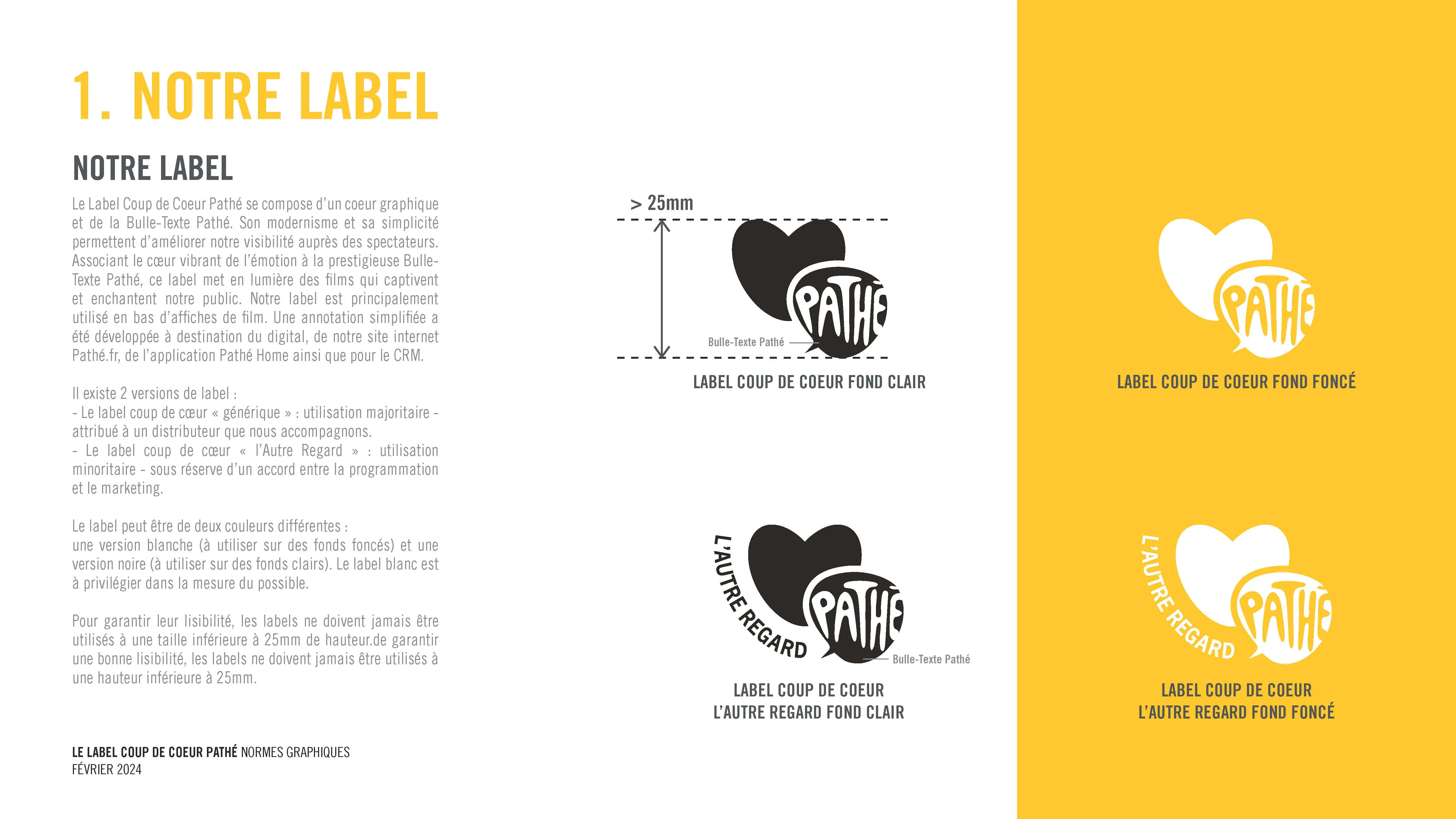 This label was created to meet Pathé’s need for greater public visibility by clearly and directly highlighting its film recommendations. Positioned to stand out among existing industry labels, it also serves as a strategic branding tool. To ensure consistent and effective use across all platforms, I developed a detailed usage guide to support the Pathé team in its implementation.
