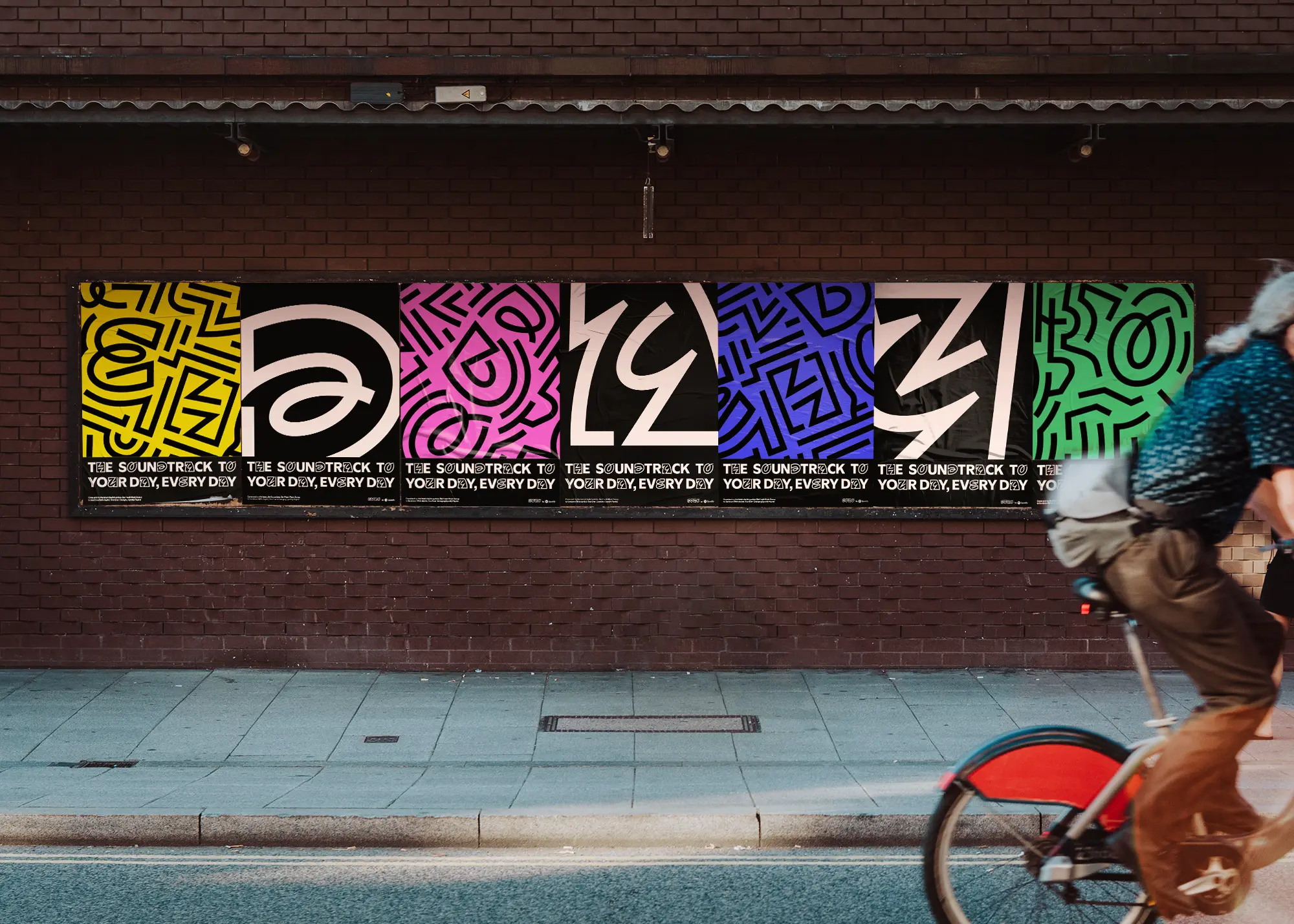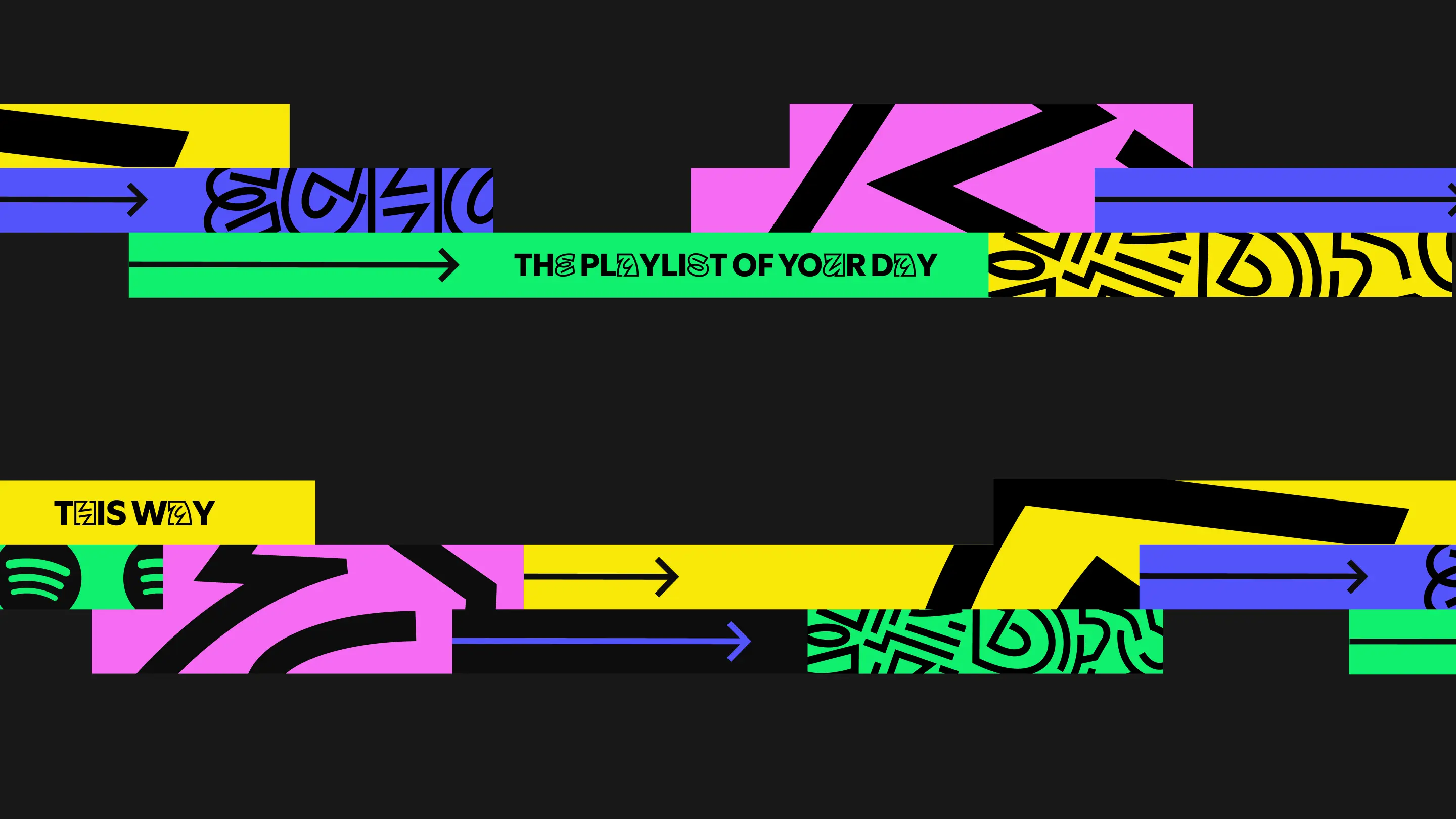 Rather than designing the architecture itself, the project focuses on translating Daylist into a graphic and experiential language: immersive, flexible, and driven by bold visual choices. The goal was to build a strong art-direction proposal rooted in Spotify’s world while giving it a distinct spatial presence.