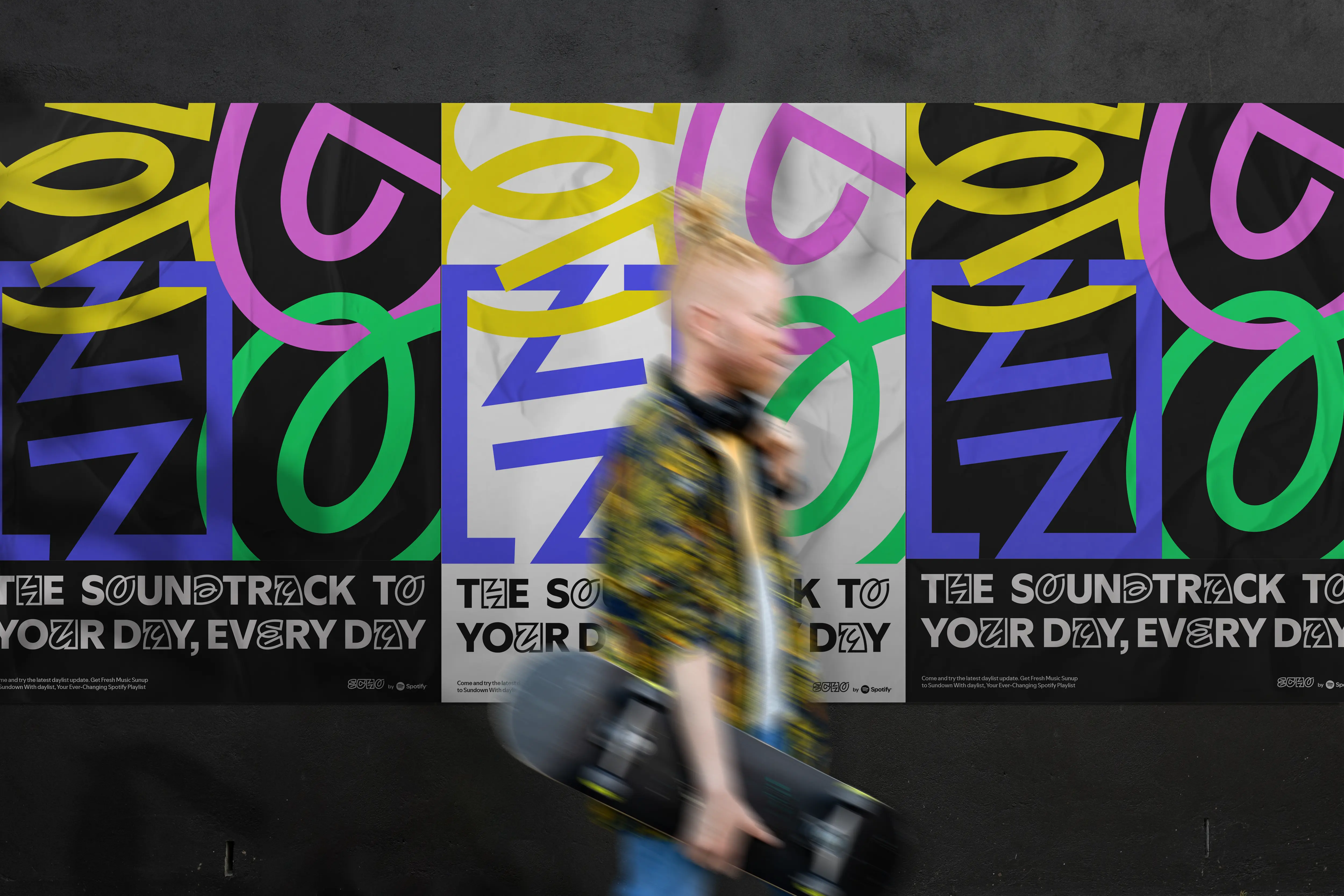 Echo is a conceptual pop-up experience created to showcase Spotify’s Daylist feature, a playlist system that shifts with the time of day and the listener’s mood.